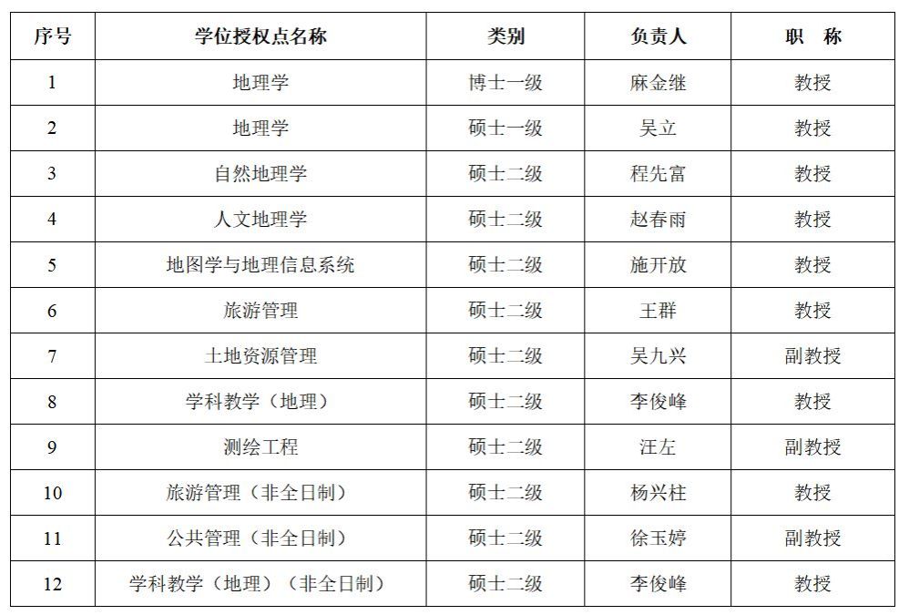 1 | 地理科学 | 理学 | 朱永恒 | 教授 |