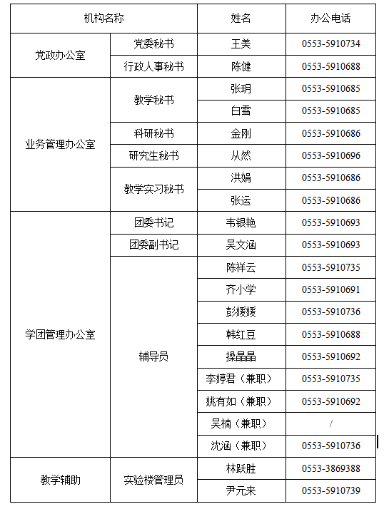 党委书记 | 张顺 | 0553-5910938 |