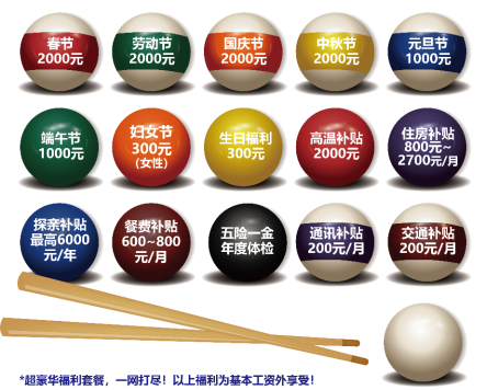 带薪休假:公司员工享受国家规定的法定节假日(元旦、春节、清明、五一、端午、中秋、国庆)、公司规定的年休假(5-10天)、探亲假(10天)、婚假(10天)、产假(98-113天)、陪产假(10天)、丧假(3-5天)、工伤假、三八妇女节女性职工放假半天等。