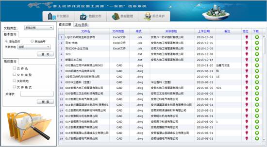 (2)开发区“一张图”综合办公服务系统。基于开发区“一张图”后台数据库,面向不同用户应用,定制各种业务管理模式,建立空间数据和业务数据一体存储应用系统,设计国土资源管理、企业经济管理、文档资料管理、数据查询、统计分析和专题应用模块来构建的统一应用平台,为开发区土地集约利用、土地利用监管、企业管理等业务提供服务。这样既可以实现无纸化办公,也可以使开发区各部门以及上下级之间沟通,信息共享。同时,也丰富了开发区办公和业务管理形式,构建了一个丰富而实用的应用平台。